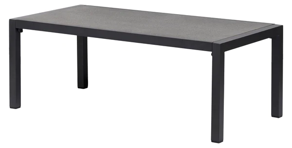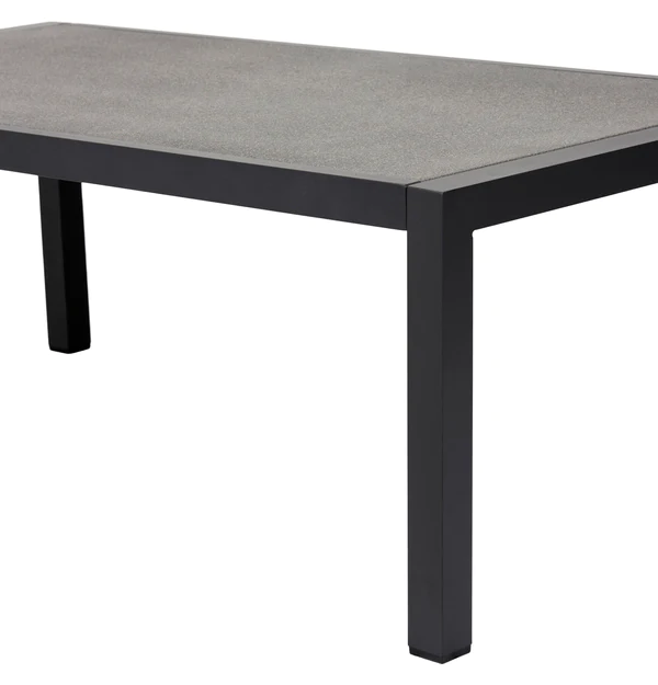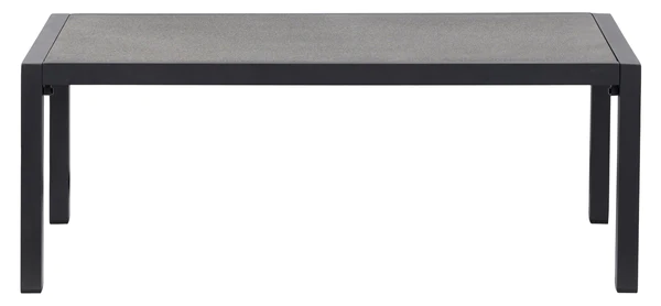 Dārza galds ar izturīgu alumīnija rāmi. Kājas ir kvadrātveida un ļoti izturīgas. Galda virsma ir izgatavota no izsmidzināmā akmens, kas nodrošina izturīgu virsmu, kas patiešām izskatās kā akmens, un galds nav ļoti smags. Galdam ir ideāls augstums atpūtas mēbelēm. Komplektam nav nepieciešama apkope, taču ziemas periodā ieteicams to uzglabāt iekšā vai zem pārsega. Izmērs: 106 x 54 x 42 cm.