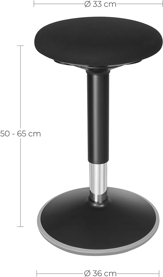 Dinamisks krēsls, stāvkrēsls, 360 grādos rotējošs, ergonomisks, regulējams augstums 50-65 cm, viegli saliekams, melns.