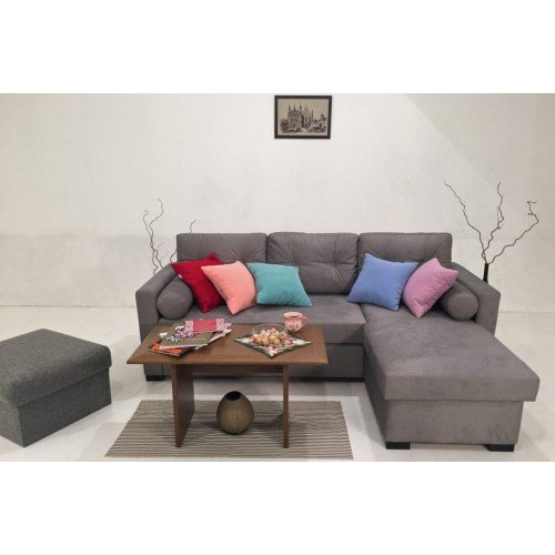 Stūra dīvāns Asveja ir īpaši stilīga un ērta mēbele. Stūris ir izgatavots no auduma, kas ir mīksts, viegli kopjams, kvalitatīvs un ar paaugstinātu ūdensizturību, tāpēc izlijušie šķidrumi tik ātri neizplatīsies un iesūksies audumā.